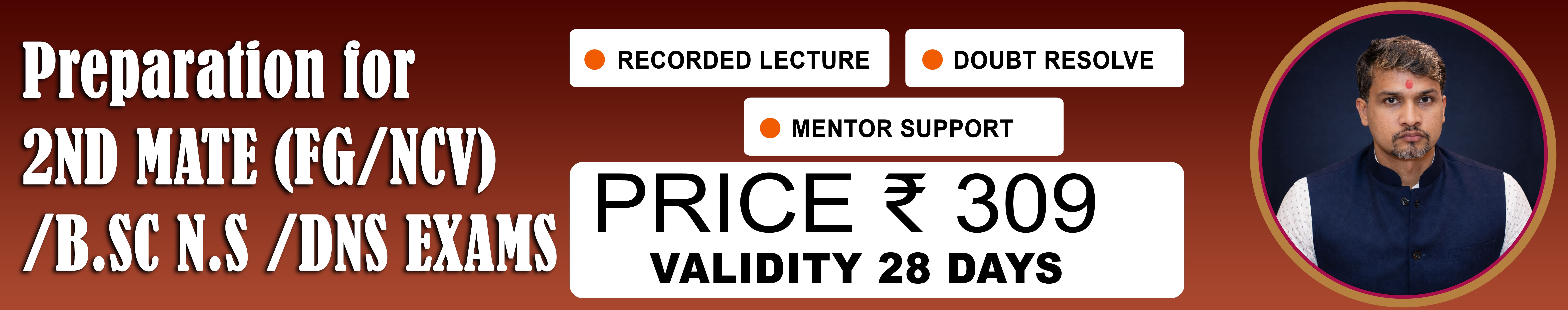 Kundan Patna is the best online institute for prepration of 2nd Mate Examination( FG / NCV ), B.Sc Nautical Science, DNS Semester 1 & 2 , GP Ratings Cadet, NCV Cadet & Any Other ther Deck Cadet Examination. You can study anytime and from anywhere. Easy & Simple method used to explain the Concept. You are free to ask doubt.